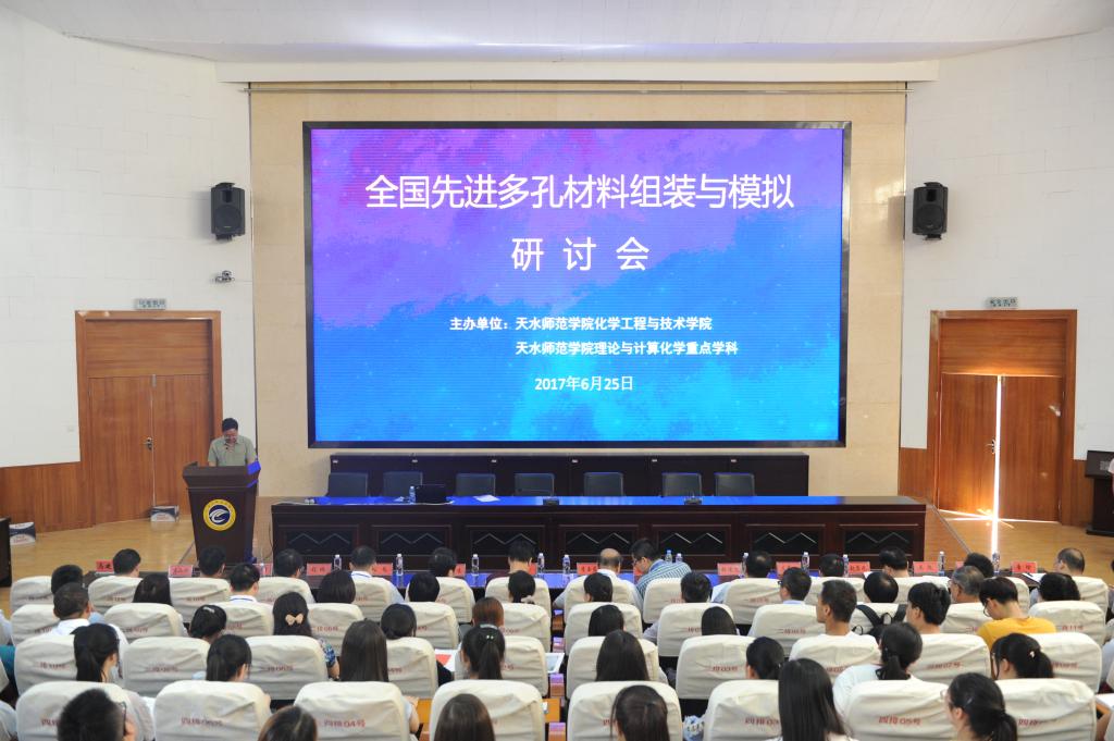 6月24至26日,“全国先进多孔材料组装与模拟学术研讨会”在天水师范学院召开。来自国家基金委、中国科学院大学、南京大学、南开大学、中山大学、西安交通大学、兰州大学、厦门大学、西北大学、北京理工大学、陕西师范大学等十几所高校和科研院所的30余名中国科学院院士、国家杰出青年科学基金获得者、973首席科学家专家学者出席了本次研讨会。会议由学校科研处、beat365在线唯一官网登录、理论与计算化学重点学科、新型分子材料设计与功能甘肃省重点实验室共同主办、是beat365beat365在线唯一官网登录近年来举办的规模较大的一次全国性学术会议。