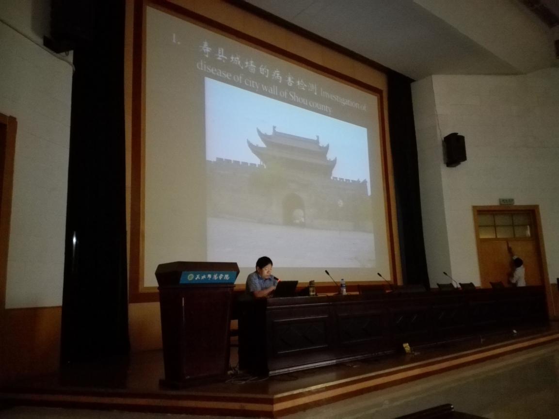 报告介绍了北京大学考古与文博学院在寿县城墙、望都汉墓壁画、少林寺塔林、田庄大墓、承德普佑寺、哈民遗址、晋侯墓地等文物保护工作中的先进经验。周老师用大量的图片,分析了这些遗址中出现的病害类型、病害成因及保护措施,为在场的师生提供了研究的新思路和新视角,获益匪浅。
