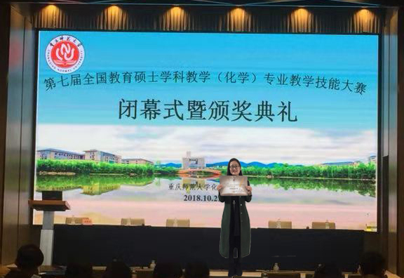 2018年10月20日至10月22日,由全国教育专业学位研究生教育指导委员会主办、重庆师范大学承办的第七届全日制教育硕士学科教学(化学)专业教学技能大赛决赛在重庆师范大学举行,经过初赛选拔,共有来自全国51所教育硕士培养单位派出的95名选手参加大赛。天水师范学院beat365在线唯一官网登录2017级教育硕士朱幸参加了本次大赛。