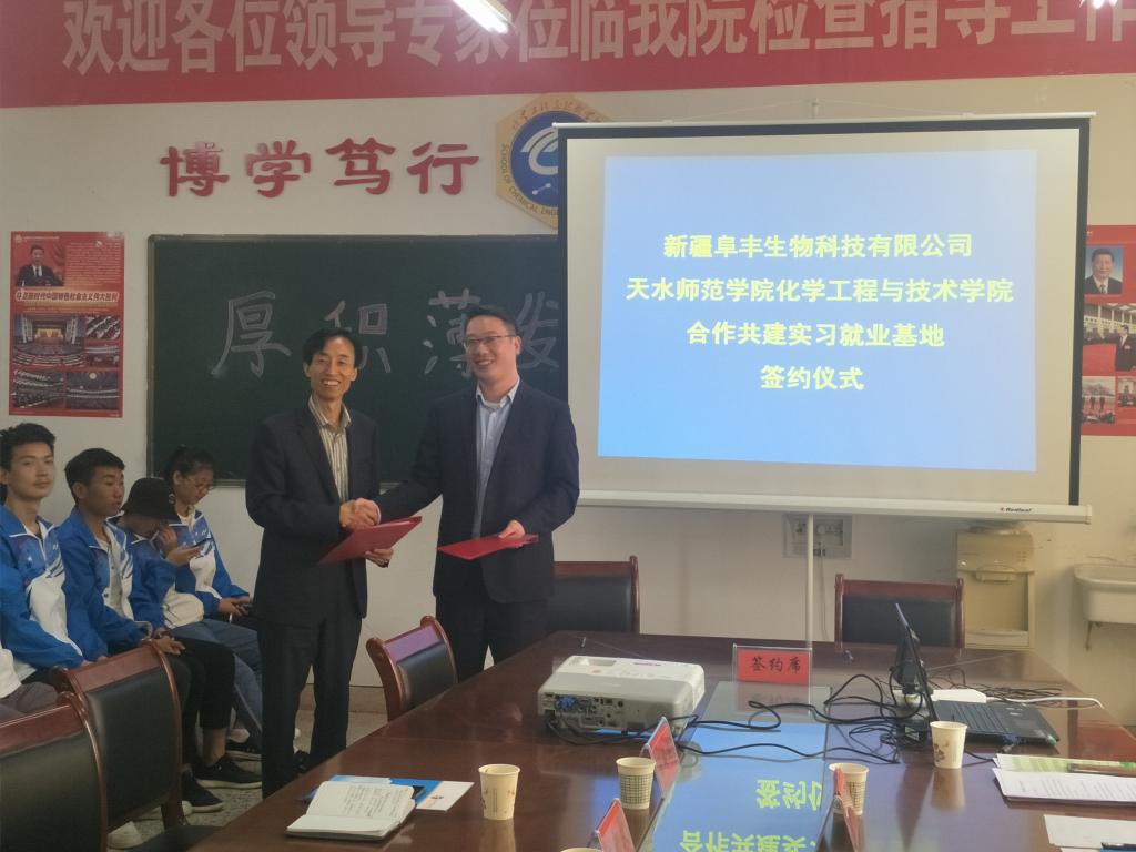 4月28日上午,beat365与新疆阜丰生物科技有限公司成功举办合作共建实习就业基地签约仪式。