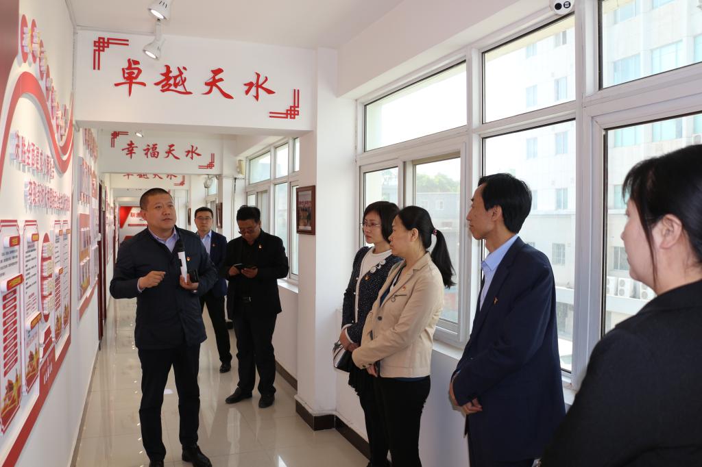 在中国联通天水市分公司党委书记、总经理张继伟和秦州区分公司二枢纽党支部书记、总经理陈勇带领下,参观了中国联通天水市分公司党建活动中心、团建阵地、企业文化室等场所,并和联通公司二枢纽党支部的党务干部进行了讨论交流。
