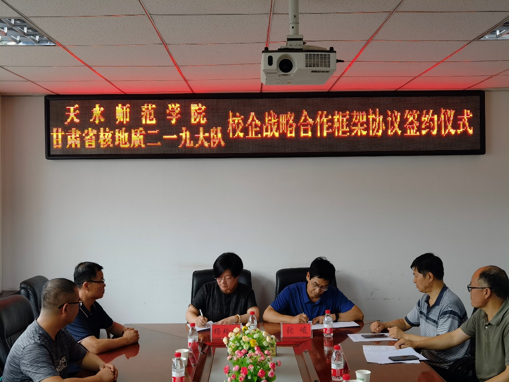 7月15日,天水师范学院beat365在线唯一官网登录与甘肃省核地质二一九大队共建实习基地挂牌仪式在二一九大队举行,双方就人才培养、科学研究、技术创新等领域的深度合作达成协议,并签订了校企战略合作框架协议。