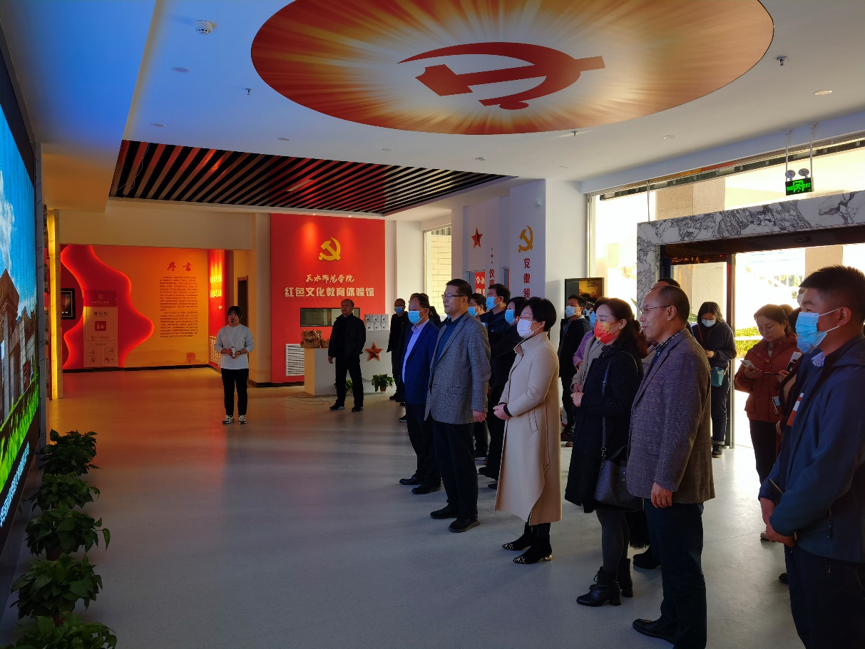 随后全体教职工参观了学校红色文化教育体验馆。体验馆讲解员以中国共产党百年光辉历程为主线,讲解了“四史”、红色甘肃、习近平总书记在甘肃、共产党人精神谱系、全国优秀共产党员和共和国功勋榜样事迹、党员警示教育等内容,全体教职工从中深切地感受到了中华民族从站起来、富起来到强起来的伟大征程,以及甘肃人民艰苦奋斗的革命史和建设史。