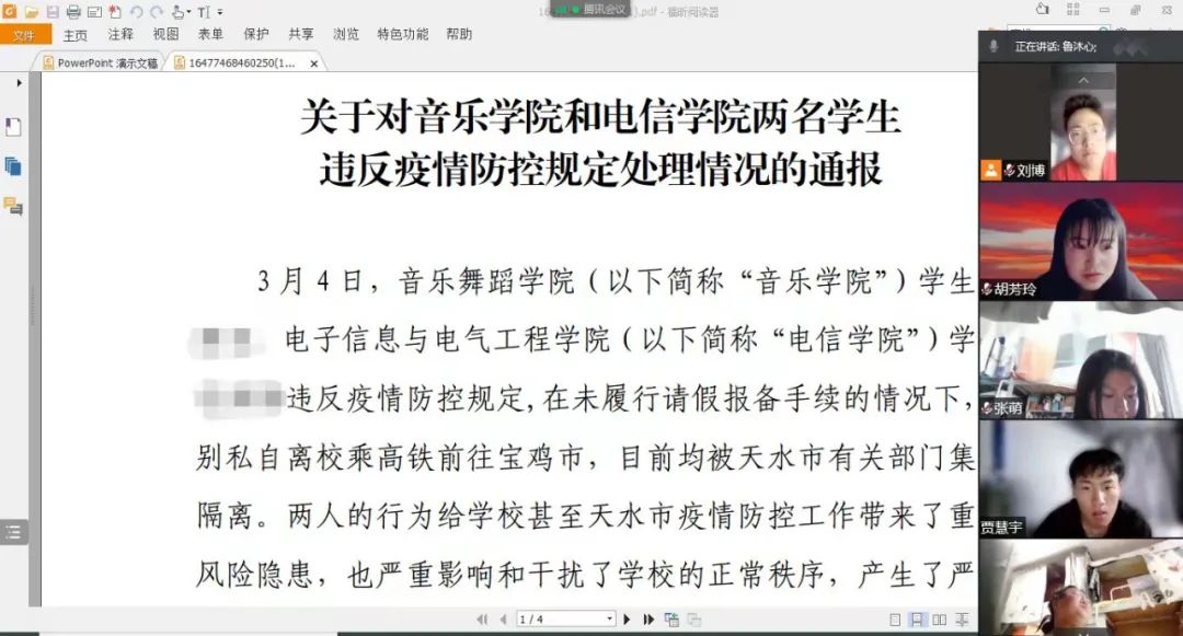 疫情防控,人人有责。为做实做强beat365学生防疫工作,切实保障学生生命安全和身体健康,做好疫情防控思想引领工作,各班积极响应党总支部署安排,及时召开“科学防控,抗击疫情”线上主题班会,全体同学认真学习学校、学院防疫制度和管理办法,由班干部领学《关于对音乐学院和电信学院两名学生违反疫情防控规定处理情况的通报》等文件,全体同学深刻领会文件精神,从典型违纪事件中吸取经验教训,严格遵守学校防疫规定,时刻提高警惕性,力争做到“自我教育、自我管理、自我服务、自我监督”,增强“一切听指挥”的大局意识,在疫情防控大考中彰显青年力量,努力争做真正能堪当大任的新时代合格大学生。同时,组织学生集体观看《中国机长》、《建党伟业》等红色影片,通过学习红色知识,传承红色基因,坚定理想信念,不断从红色基因中汲取前进的力量,勇担抗疫重任,在成为担当民族复兴大任时代新人的道路上努力奋进。