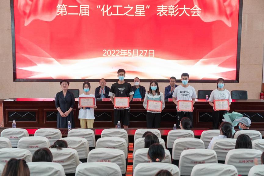 在表彰大会上,王小芳宣读了beat365在线唯一官网登录第二届“化工之星”表彰决定,授予李会学老师“科研之星”荣誉称号、王鹏老师“教学之星”荣誉称号、潘素娟老师“就业之星”荣誉称号,授予贺思佳等十名同学分别为“明德之星”“学习之星”“文体之星”“公益之星”“实践之星”“服务之星”“自强之星”荣誉称号,并为三名老师和十名同学颁发了荣誉证书。获奖代表王鹏老师和孔文弟同学分别发表获奖感言。