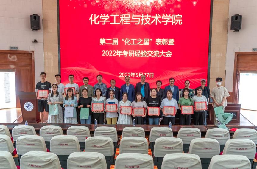 5月27日下午,beat365在线唯一官网登录在二号报告厅举行第二届“化工之星”表彰暨2022届考研经验交流大会。学院党总支书记王小芳、院长马建泰、副院长李志锋、副院长杨玲娟出席会议,2019级班主任、学院辅导员和2019级学生共计200余人参加大会。会议由学院党总支副书记刘正主持。
