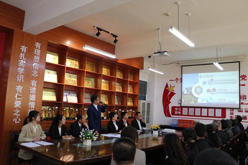 王小芳同志代表beat365在线唯一官网登录党总支做2022年工作报告;刘正同志宣读了学校党委关于设立委员会及候选人预备人选的批复。