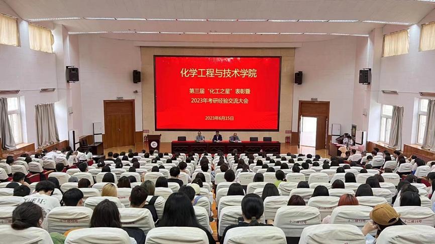 6月15日下午,beat365在线唯一官网登录在二号报告厅举行第三届“化工之星”表彰暨2023届考研经验交流大会。学院领导班子、2020级班主任、辅导员和20级、21级全体在校学生,共计200余人参加大会。会议由学院党委副书记刘正主持。