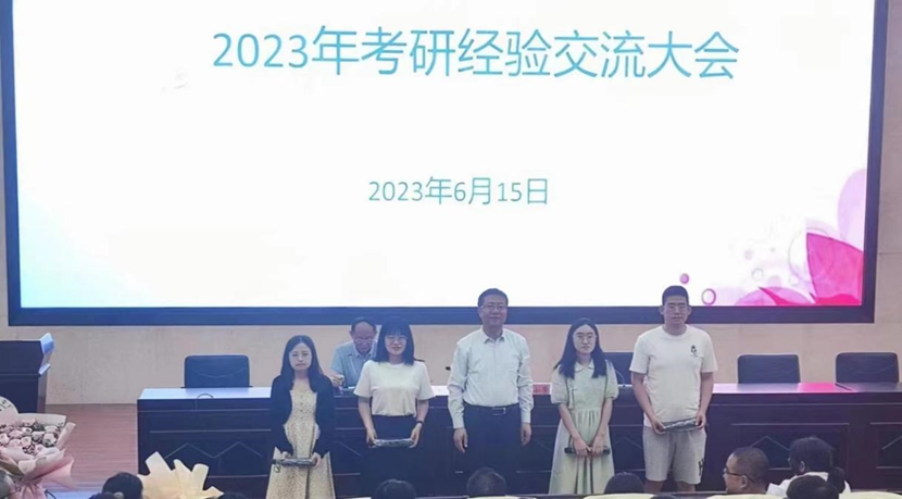 在考研经验交流大会上,考取兰州大学的2019级化学一班裴佳雪等四位2023届考研优秀学生代表从为什么要选择考研、如何选择报考院校、学习方法技巧、怎样调适心理、精心准备面试等不同视角分享了考研经验。2021级化学一班赵彦腾代表20、21级考研学子作表态发言,激励同学们努力考研,好好学习。教师代表葸超超和马洁两位博士从亲身经历、就业形势、职业发展三个方面为20、21级考研学生作考研指导。