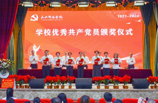 为推动学习贯彻习近平新时代中国特色社会主义思想主题教育和“三抓三促”行动走深走实,充分发挥先进典型、模范师生的示范引领作用和基层党组织战斗堡垒作用,激励全校各级党组织和广大党员立足岗位做贡献、踔厉奋发建新功。6月29日上午,天水师范学院庆祝中国共产党成立102周年暨“七﹒一”表彰大会在大礼堂举行。大会对 2021—2023 年度在学校改革发展稳定中涌现出来的先进基层党组织、优秀共产党员和优秀党务工作者进行表彰,进一步激励引导全校上下重温党的光辉历史,弘扬伟大建党精神,发挥先进典型的示范带动作用,激励基层党组织和党员坚定信念、履职尽责、奋发有为。