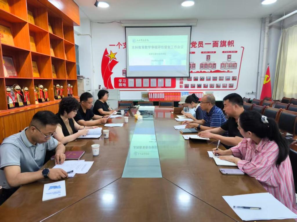督查工作会议上,院长李志锋汇报了学院自评自建工作开展情况、教学资料清单及对应材料准备进度,介绍了学院在教育教学过程中形成的特色亮点,以及对教学成果的系统凝练等情况。同时,也分析了目前存在的问题,并对下一步工作计划做了简要说明。评建办工作人员对与清单对应的课程大纲、试卷、毕业论文(设计)以及实习协议等重要教学资料进行了随机查阅。