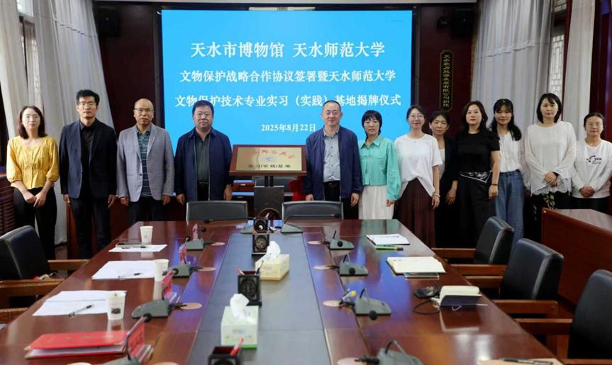 李志锋与天水市博物馆签订了文物保护与修复合作协议,巩军全与刘玉璞共同为文物保护技术专业实习(实践)基地揭牌。